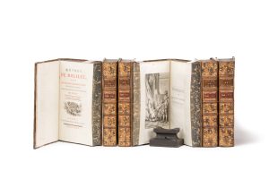Édition ornée du portrait de Molière, gravé par Cathelin d’après Mignard, de 6 fleurons de titre et de 33 figures par Moreau le jeune, gravées par Baquoy, de Launay, Duclos, De Ghendt, etc.