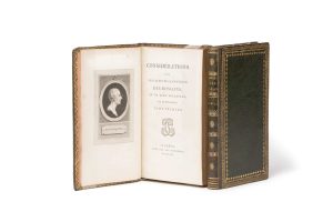 Charles-Louis de Secondat de MONTESQUIEU. Considérations sur les causes de la grandeur des romains, et de leur décadence. Paris, Renouard, 1795. 2 volumes in-8, maroquin vert, encadrement droit formé de roulettes, chaînettes et filets dorés,...