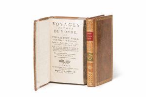 Pierre-Marie-François de PAGES. Voyages autour du Monde et vers les deux pôles par terre et par mer, pendant les années 1767, 1768, 1769, 1770, 1771, 1773, 1774 et 1776. Paris, Moutard, 1782. 2 volumes in-8, basane porphyre, filets et roulette...