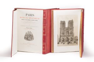 PARIS DANS SA SPLENDEUR, Monuments, vues, scènes historiques, descriptions et histoire. Paris, Nantes, Charpentier, 1861. 3 volumes in-folio, demi-chagrin rouge, dos à 4 nerfs ornés, tranches dorées (reliure de l’époque).