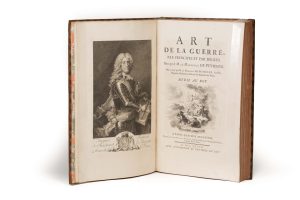 Jacques-François de Chastenet de PUYSÉGUR. L’Art de la guerre par principes et par règles. Paris, Jombert, 1748. 2 tomes en un volume in-folio, veau marbré, dos à 6 nerfs ornés (reliure de l’époque).
