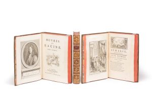 Jean RACINE. Œuvres. Paris, s.n., 1760. 3 volumes in-4, veau marbré, dos à 5 nerfs ornés (reliure de l’époque).