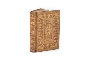 [RELIURE du XVIIe siècle]. Grand in-8, basane chamois, les plats et le dos entièrement ornés aux petits fers avec double encadrement de filets et roulettes dorés, écoinçons, les champs ornés d’un semé de lys et d’hermines, armoiries...
