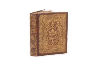 [RELIURE du XVIIe siècle]. Petit in-4, basane fauve, les plats ornés de multiples encadrements formés de filets, fers dorés, roulette et fleurons dorés, au centre du premier plat médaillon avec personnage et au centre du second plat fer doré...