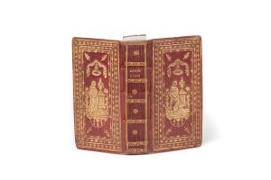 [RELIURE du XVIIIe siècle]. In-16, maroquin rouge, plaque dorée sur les plats représentant une jeune femme en pied près d’une urne dans un encadrement de multiples filets et roulettes, dos lisse orné, tranches dorées.