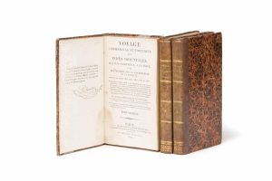 Voyage rédigé sous la forme épistolaire illustré de 2 cartes dépliantes avec contours coloriés et 4 tableaux dépliants.