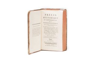 Jean-René SIGAUD DE LA FOND. Précis historique et expérimental des phénomènes électriques… Paris, Rue et Hôtel Serpente, 1785. In-8, veau marbré, dos à 5 nerfs orné (reliure de l’époque).