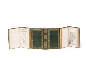 Pitton TOURNEFORT. Elémens de botanique, ou méthode pour connoître les plantes. Paris, Imprimerie Royale, 1694. 3 volumes in-8, maroquin vert à long grain, encadrement droit formé d’une large roulette avec urnes fleuries serti d’un double...