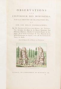 Frédéric-Guillaume-Henri de TREBRA. Observations sur l’intérieur des montagnes, précédées D’un Plan d’une Histoire générale de la Minéralogie, par M. de Veltheim ; avec un discours préliminaire et des notes de M. le baron de...