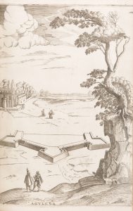 C’est l’auteur lui-même qui dessina et grava ces 53 planches qui représentent des plans de fortifications, avec en fond des vues de villes ou d’habitations à vol d’oiseau.