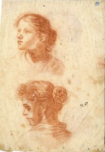 Federico Zuccari (1539-1609) [cerchia di], Testa di fanciullo e studi di mani (recto). Due teste muliebri (verso). Fine del XVI secolo-inizi XVII.