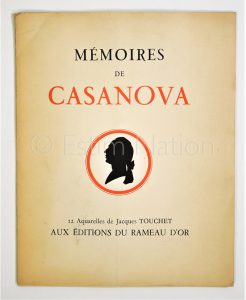 Portfolio : Mémoires de Casanova - Aux éditions du Rameau d'Or - 12 aquarelles couleur de J. Touchet - s.d. mais 1950 - 19,7 x 24,6 cm