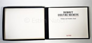 Portfolio avec emboitage: L'oeuvre secrète de DUBOUT - 15 décembre 1982- édité par La Vue/ J.J Pauvert Paris - tirage à 990 exemplaires au public - exemplaire n°97 - Préface de 6 pages de Frédéric DARD - 243 pages de texte et illustrations + 44 planches sérigraphiées noir et blanc et 1 en couleur - 36 x 28,5 cm - emboitage en velours bleu - Tirage à l'italienne