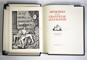 Portfolio avec emboitage: Mémoires d'une chanteuse allemande - novembre 1978 - édité par L'Hérésiarque - Paris - tirage à 2000 exemplaires - exemplaire non justifié - 243 pages de texte et illustrations + 50 planches sérigraphiées 30 x 42 cm - emboitage sali et restauré