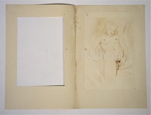 Dessin original d'une femme se touchant - crayon de couleur - 22 x 30,5 cm - signé E.L. - s.d. -