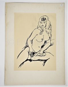 Dessin original d'une femme se touchant - feutre noir - 40 x 54 cm