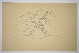 Dessin original représentant deux jeunes femmes nues s'activant - encre de chine noire - 50,7 x 33,2 cm