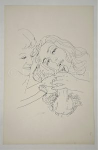 Dessin original représentant deux jeunes femmes s'amusant avec un sexe d'homme (2) - encre de chine noire - 32,7 x 50,2 cm