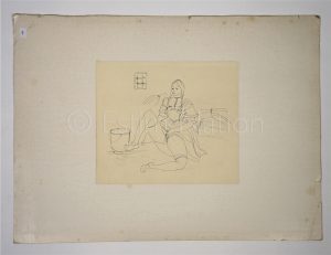 Dessin original représentant une fille de ferme se touchant - feutre - 25,5 x 22 cm