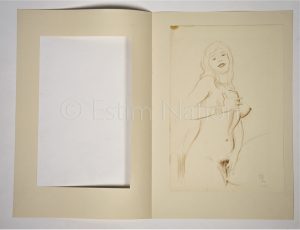 Dessin original d'une femme debout se touchant - crayon de couleur - 22,2 x 32,7 cm - signé E.L. - s.d. -