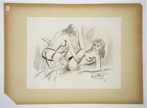 Dessin original représentant deux femmes nues complices - fusain - 36,6 x 28 cm - signé Georges Villard
