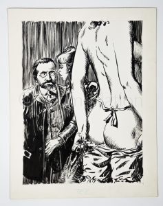 Dessin original représentant deux femmes et un homme habillé - genre dessin du XIXè siècle - encre de chine - 20,9 x 26,7 cm