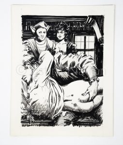 Dessin original représentant un couple faisant l'amour sous le regard d'un autre couple - genre dessin historique du XVIIIè siècle - encre de chine - 21 x 27 cm - sur carton fort