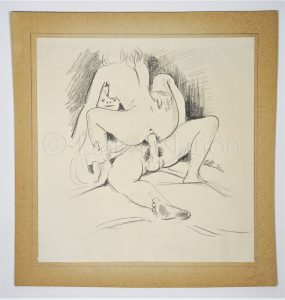 Dessin original représentant un couple faisant l'amour - mine de plomb - 24,3 x 25,1 cm
