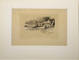 Gravure représentant une jeune femme sur son lit - Paris - 1914 - 23 x 15,5 cm