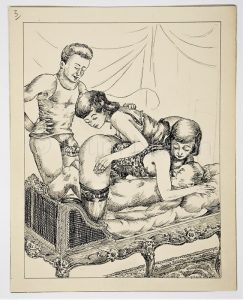 illustration représentant une scène de sexe à quatre personnes - 16 x 20,2 cm