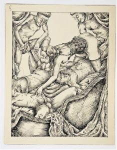 illustration représentant une scène de sexe à six personnes - 15,9 x 20,1 cm