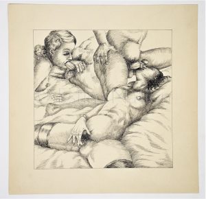 illustration représentant une scène de sexe à quatre personnes - 23,2 x 23,2 cm