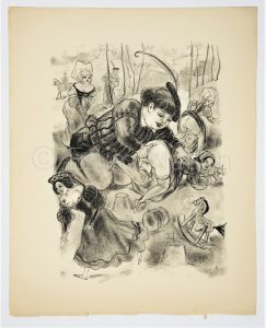 illustration représentant une scène de sexe champêtre à plusieurs - 22,4 x 27, 5 cm
