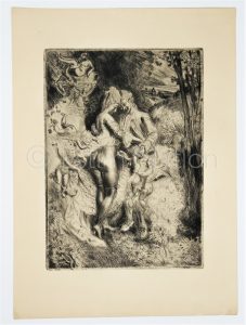 Eau-forte représentant une scène de sexe d'un couple habillé et dehors - gravure très fine - 24,2 x 34,4 cm