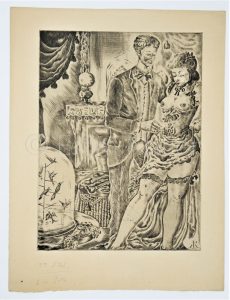 Eau-forte représentant un couple habillé dans un intérieur raffiné - gravure très fine de 1er état - 23,5 x 30,6 cm