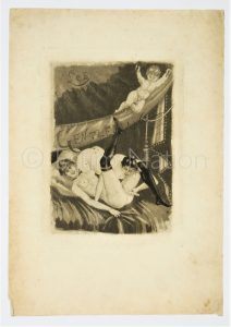 Saphisme - Gravure représentant une scène de sexe avec deux femmes - Les amours d'un gentleman - 12,9 x 18,3 cm