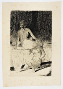 Saphisme - Gravure représentant une scène de sexe entre deux femmes - 11 x 15,7 cm - piqûres