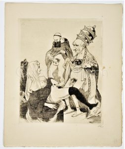Gravure représentant une scène de sexe avec des représentants religieux -n°11 de l'ouvrage dont est issue l'illustration - signée JC ou LC - 22 x 26,5 cm