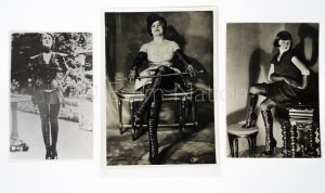 Les bottes - Ensemble de 9 photographies de portrait de belles femmes habillées ou non avec de belles bottes - Tirage argentique en noir et blanc d'époque et retirage - Divers formats jusqu'au 20,5 x 32 cm - circa années 1950/1970.
