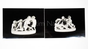 Ensemble de 12 photographies d'un même objet d'art érotique en ivoire issues d'une collection - Tirages argentiques en noir et blanc - 17,7 x 23,9 cm - on joint une autre photo d'un autre objet " Femme et satire" allemand du 10ème siècle photo prise en 1977.