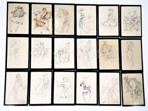 Ensemble de 18 cartes postales couleurs de ses dessins érotiques - édité par Glamour international Production - Italie - 1985 - 10 x 15 cm