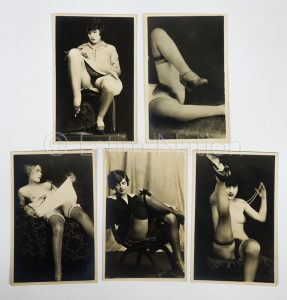 Lot de 5 photos et cartes postales érotiques de photographies des années 1920/1930 - 9 x 14 cm - tirage sépia -
