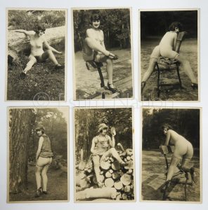Lot de 6 photos et cartes postales érotiques de photographies des années 1920/1930 - 9 x 14 cm - tirage sépia - scène champêtre
