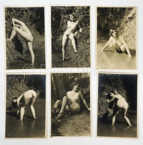 Lot de 6 photos et cartes postales érotiques de photographies des années 1920/1930 - 9 x 14 cm - tirage sépia - scène dans la nature