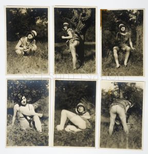 Lot de 6 photos et cartes postales érotiques de photographies des années 1920/1930 - 9 x 14 cm - tirage sépia - scène dans la nature