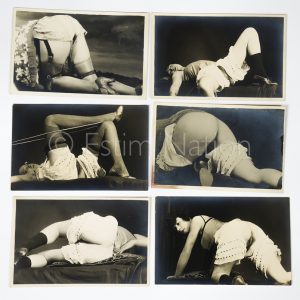 Lot de 6 photos et cartes postales érotiques de photographies des années 1920/1930 - 9 x 14 cm - tirage sépia - femmes allongées avec dessous