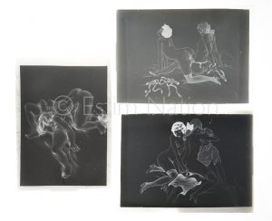 Photographie érotique - Ensemble de 11 négatifs photographiques sur plaques de verre des dessins ayant servis à la production de l'ouvrage " Jeunesse " d'André COLLOT (1897-1976) , tiré à l'italienne à 60 exemplaires - 9 x 12 cm - avec emballage d'origine - érotique et scènes explicites champêtre