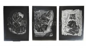 Photographie érotique - Ensemble de 6 négatifs photographiques sur plaques de verre de dessins ayant servis à la production d'un ouvrage érotique non identifié (peut être un "Gamiani") - 9 x 12 cm - avec emballage d'origine - érotique et scènes explicites d'intérieur