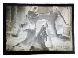 Photographie érotique - 1 négatif photographique sur plaques de verre - début XXème siècle - ayant servis à la production de tirage argentique sur papier, de cartes postales ou à l'usage privée ou éditorial - 12,8 x 17,9 cm - sans emballage d'origine - scène d'orgie - on joint 2 tirages papier noir et blanc au format