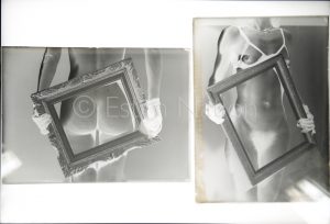 Photographie érotique - Ensemble de 3 négatifs photographiques sur plaques de verre représentant une femme nue encadrée - chaque plaque 13 x 18 cm env. - avec qq tirages papier